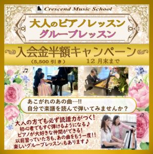 クレッシェンド音楽教室では大人の方でも必ず読識力がつきます!初心者でもすぐ弾けるようになります♪
